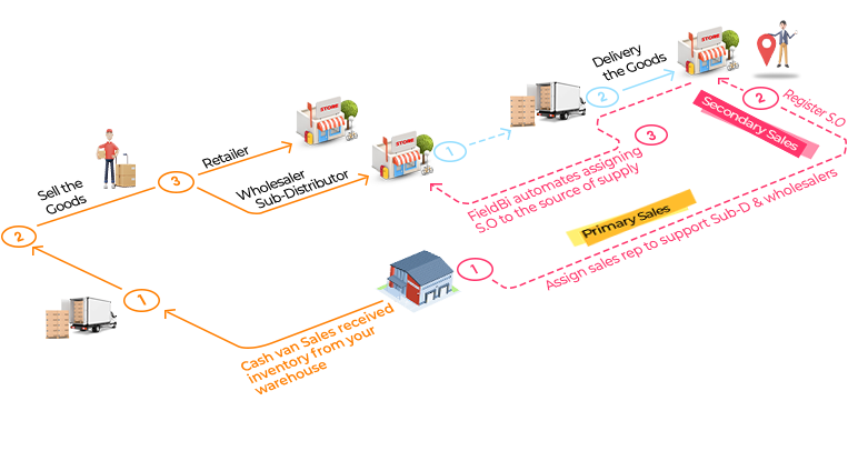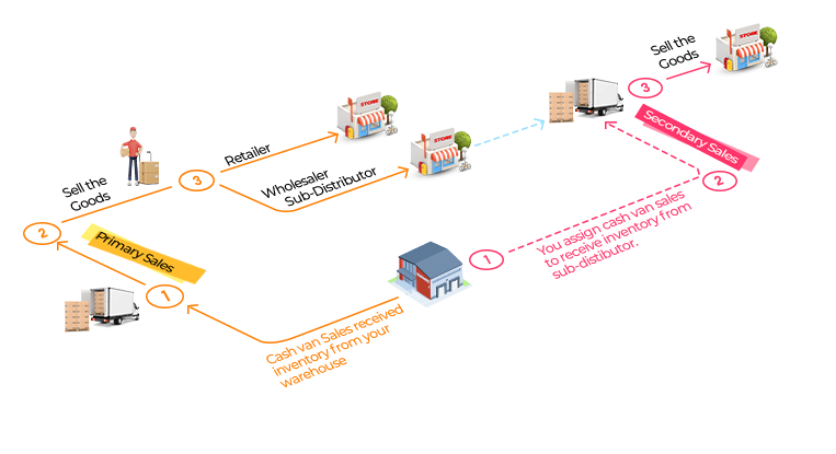 Secondary Sales, when you assign cash van sales to receive inventory from sub-distributor sale and invoices